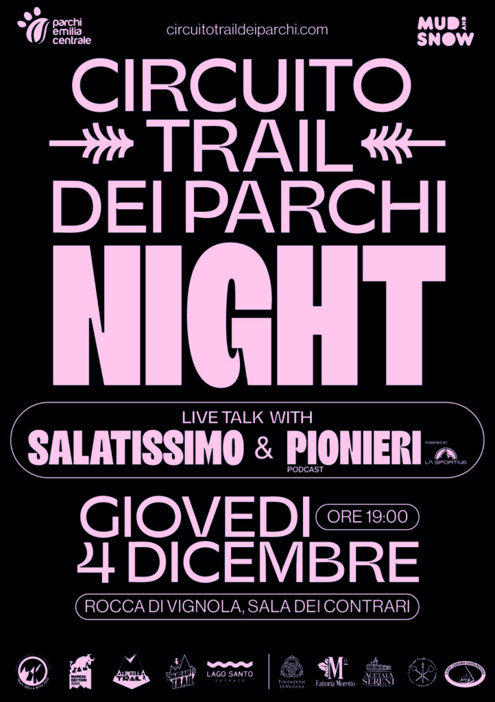 🔥 Salatissimo, content creator e runner, racconterà invece cosa significa vivere il trail oggi — tra comunità, appartenenza e la bellezza di correre immersi nella natura dei nostri parchi.